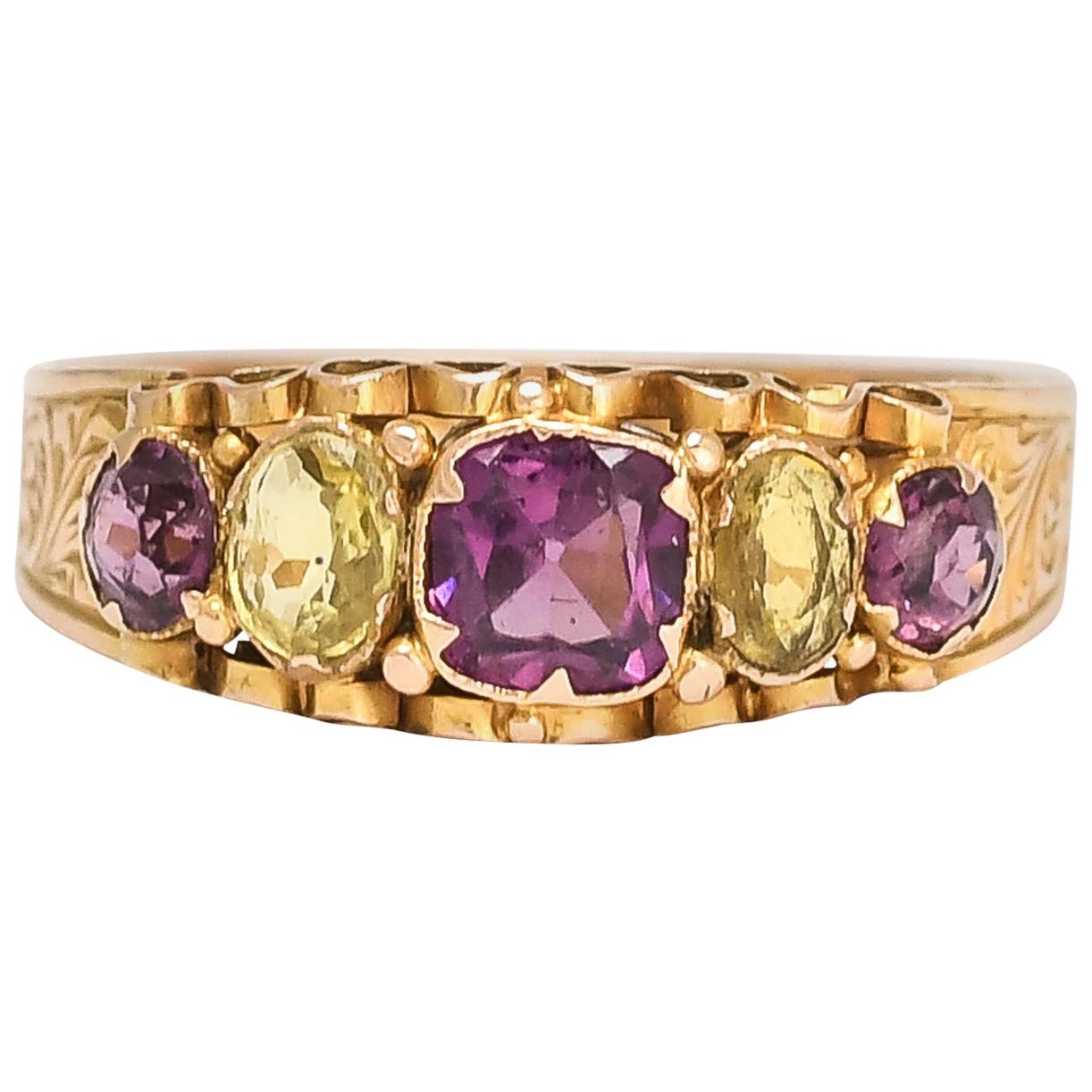 Antique MidVictorian Almandine Chrysoberyl Band Ring For Sale
